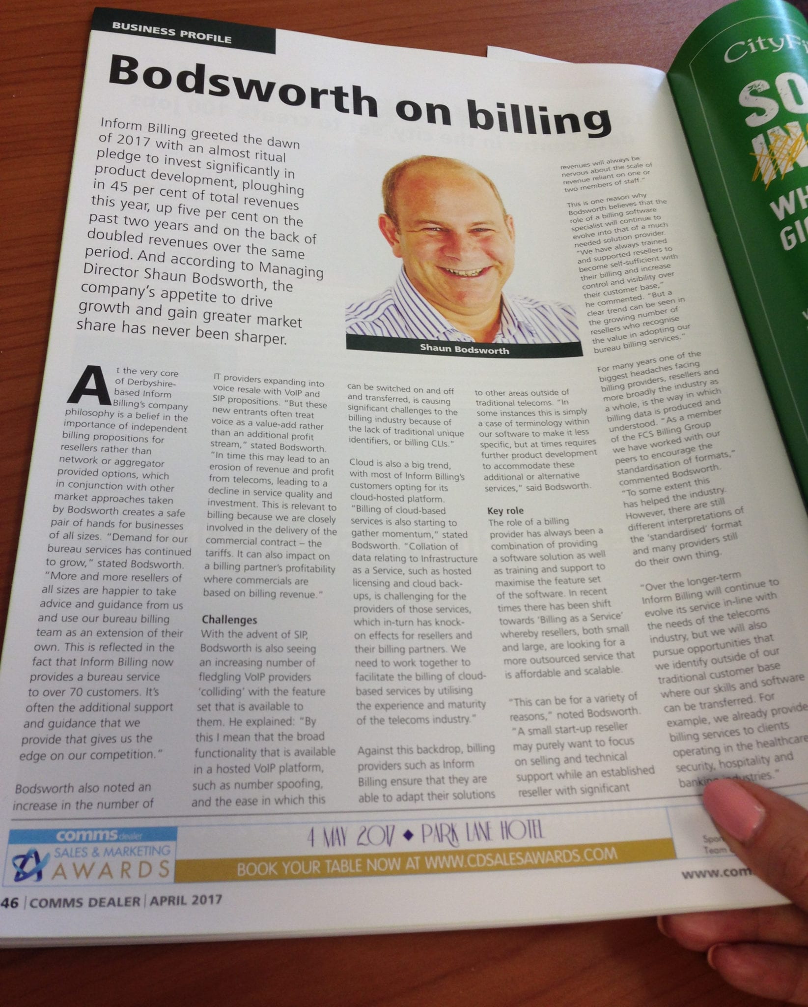 We were delighted to be included in the latest edition of Comms Dealer magazine – where Shaun gave his views on billing market trends and how these relate back to our services. You can find the feature (replicated below) on page 46 of the April issue: