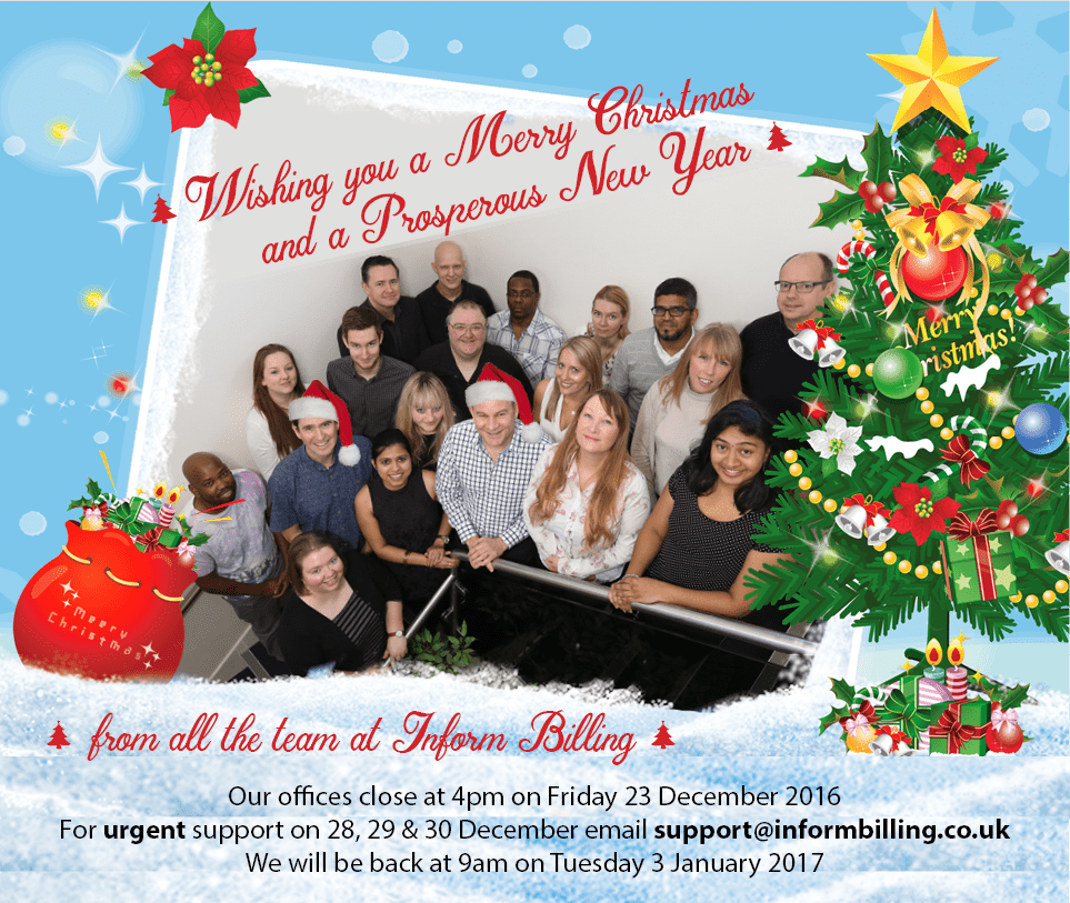 Inform Billing’s opening hours and support availability over the Christmas period is as follows: